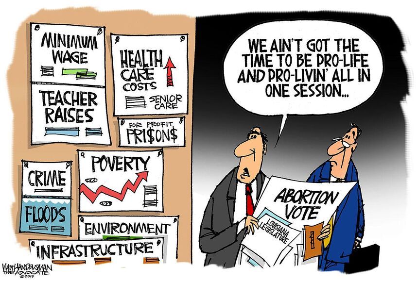 As Walt Handelsman points out, those who honestly care about life are not a majority among those who simply want to control other people.