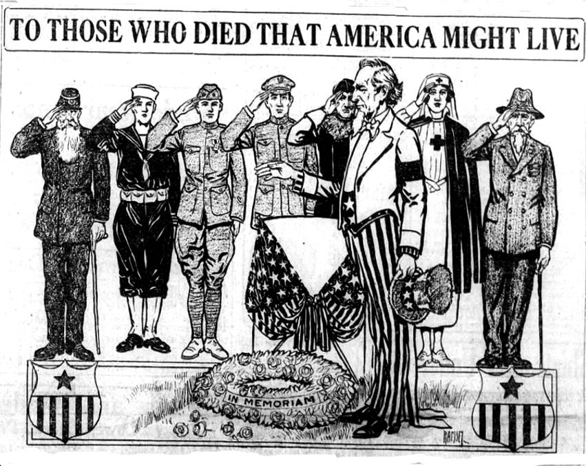 Skip to commentsE.A. Bushnell gets to lead off as we look back at the holiday — some were still calling it “Decoration Day,” others “Memorial Day” — a century ago, because he did more than a pro forma mandatory holiday cartoon.