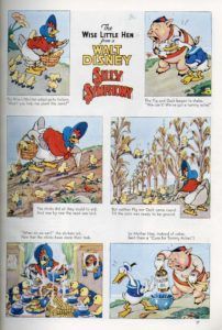 At the same time Donald Duck debuted in print as part of a Walt Disney partnership with Good Housekeeping magazine. In April 1934 Disney and the magazine began a series which promoted the newest Disney releases. The June 1934 Good Housekeeping page featured The Wise Little Hen.