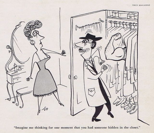 The other element in this is that there is a distinction between a cliché and a tradition. Mike Lynch has for some time been running excerpts from a book on cartooning clichés at his blog and you can catch up with it using the links at the bottom of his current entry, which includes “Man in the Closet” gags.
