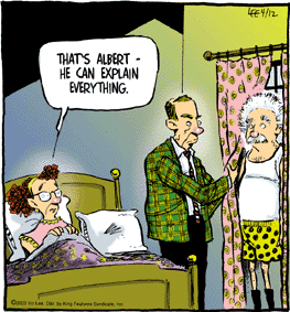 I don’t think it would half so funny if Einstein were not in polka-dot shorts and black socks or if he had looked like Cary Grant, though the punchline is still hilarious. But Vic Lee really pulled out all the stops on this one.