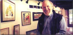 All the while, he loved to sketch. His art mostly consisted of cartoons, although he was talented in several mediums. In 1974, while still playing music on the Cape in the summers, he went to Mount Snow to find a gig playing music in the winter and became the resident musician at Snow Lake Lodge for five years. Later, he began playing at The Silo, performing with The Duck Tones and other local musicians. In 1980, he published the New York Times bestseller, “The Official I Hate Cats Book,” which launched his full-time career as an illustrator. Mr. Morrow went on to become an accomplished illustrator. He published many other books, calendars, and greeting cards, and did commissioned and freelance work for numerous corporations both locally and globally.