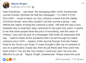 Wright said he was told it is cheaper for the paper to utilize the cartoonists from the Halifax-based Chronicle Herald.