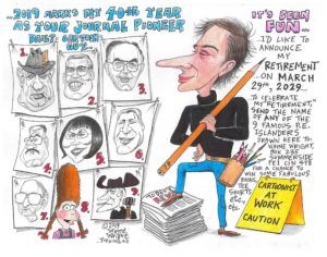 Wayne Wright has been sketching the daily cartoons for Summerside, [Prince Edward Island]-based newspaper the Journal Pioneer for the past 40 years, but last week that came to an end.