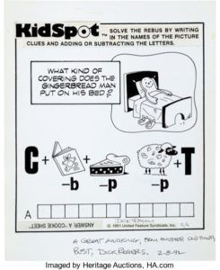 In 1985 he took over the Kidspot puzzle panel that Leo White had started in 1981.