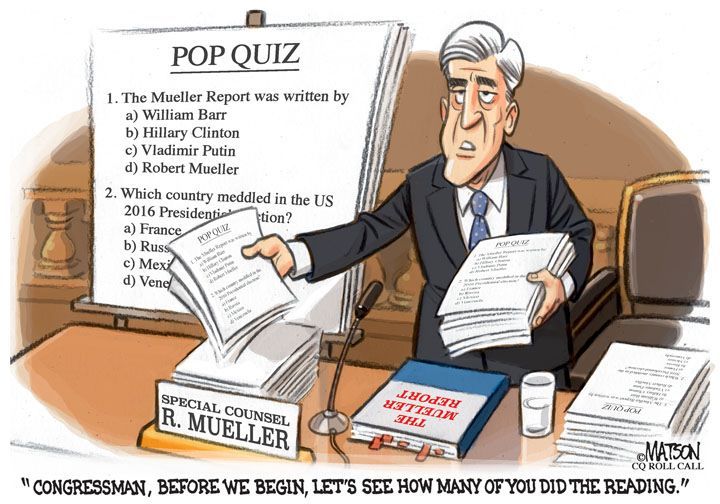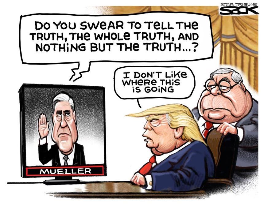 Skip to commentsAbout the time I hit “Publish” this morning, Robert Mueller will be taking his oath and beginning to testify, and a lot of pundits and cartoonists will either look like prophets or nitwits, depending on what happens next.