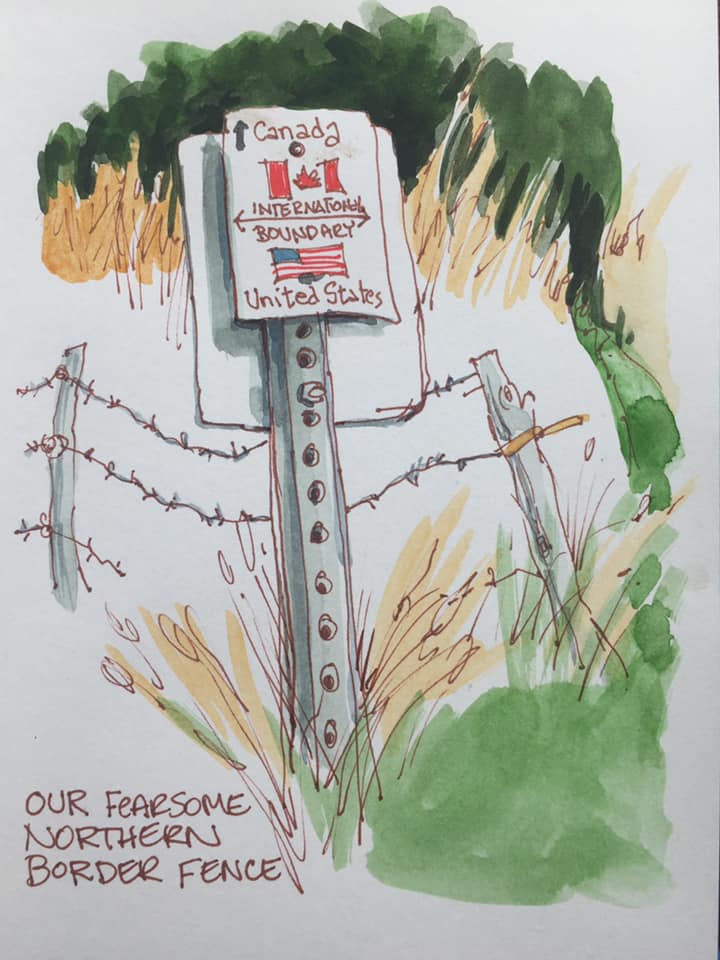 Signe Wilkinson is apparently prowling around somewhere nearby, because she offers this sketch of what our border looks like when there are mostly white folks on the other side, and, yes, that’s what it looks like.
