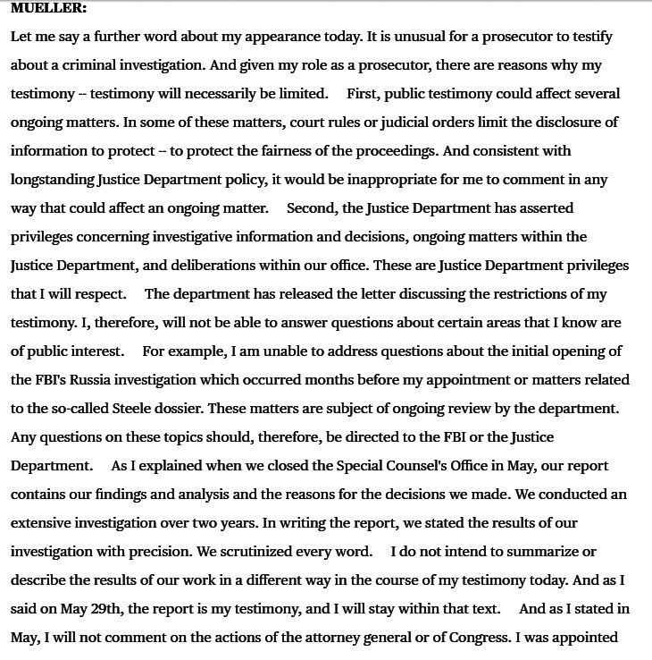 He was clear about this in the weeks leading up to his appearance, and he was quite clear about the limits of his testimony in the hearing itself: