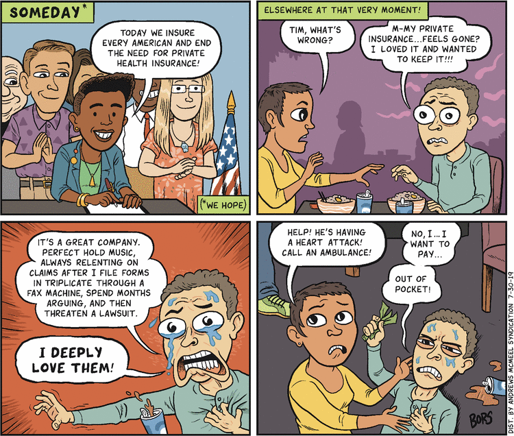 Which, once we’ve got single payer, will be as easy to deal with as, say, the IRS, where you’re never put on hold or given faulty advice.