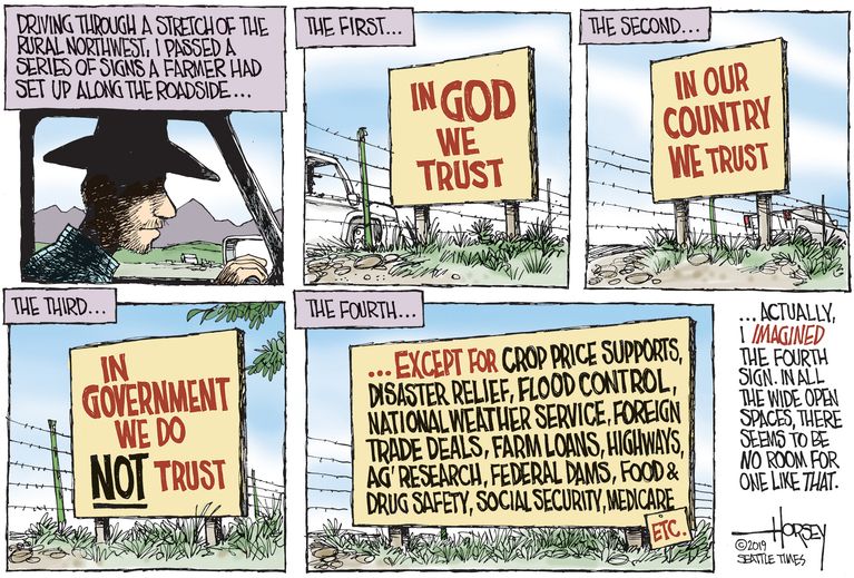 David Horsey comments on rural libertarians who tend to be a lot more clear about their anger than they are about their situation.