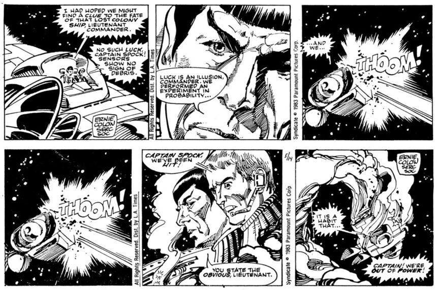 Then he drew (with Serc Soc and Alfredo Alcala) an episode of the Star Trek comic strip from May 9 to July 2, 1983.