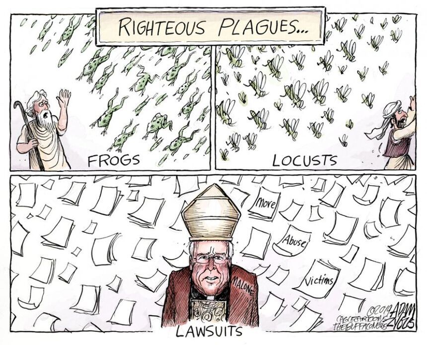 From opposite ends of the Empire State — Jeff Boyer in the Cap District and Adam Zyglis on the Niagara Frontier — come these commentaries on New York’s granting of a year-long waiver of the statute of limitations, during which victims of pedophiles may file civil suits against their abusers.