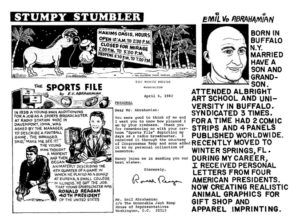 Below: Emil’s National Cartoonists Society mini-bio card.