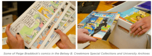 The Betsey B. Creekmore Special Collections and University Archives now holds an ample collection of black-and-white pen-and-ink drawings, cover art, watercolors, print proofs, and thousands of original pen-and-pencil panel drawings, covering Braddock’s work from the early days of her career through 2018.