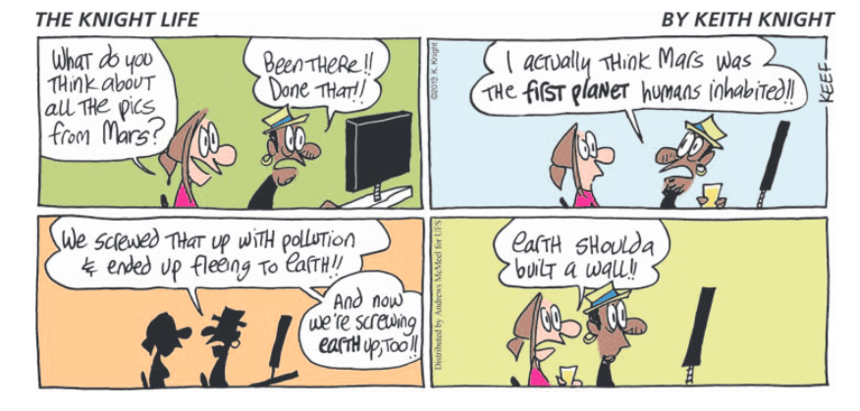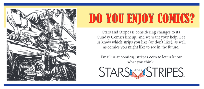 Above is The Knight Life running in this weekend’s Stars and Stripes newspaper. It is a repeat of the first 2019 Sunday strip. I don’t know if other papers will also do this. It strikes me as odd, since Stars and Stripes has been running a notice of a comics poll for quite some time.