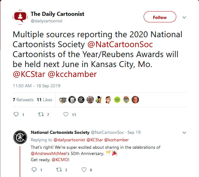 The National Cartoonists Society confirms the time and place of next year’s Reuben Weekend.