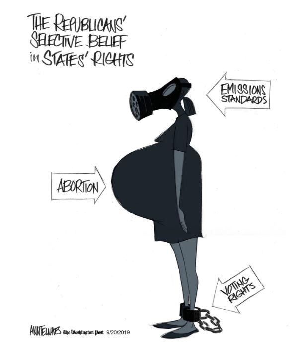 And, as Ann Telnaes suggests, it’s getting a little hard to keep track of what the hell conservatives believe on those topics.