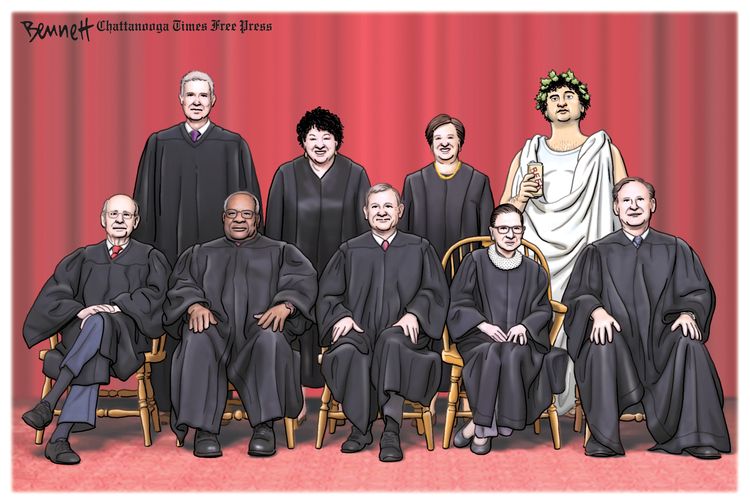 Clay Bennett points out that we’ve put a lying frat boy on the bench of the Supreme Court, and the cartoon is as funny today as it would have been back when we first saw Moscow Mitch and his lockstep crew do the deed.