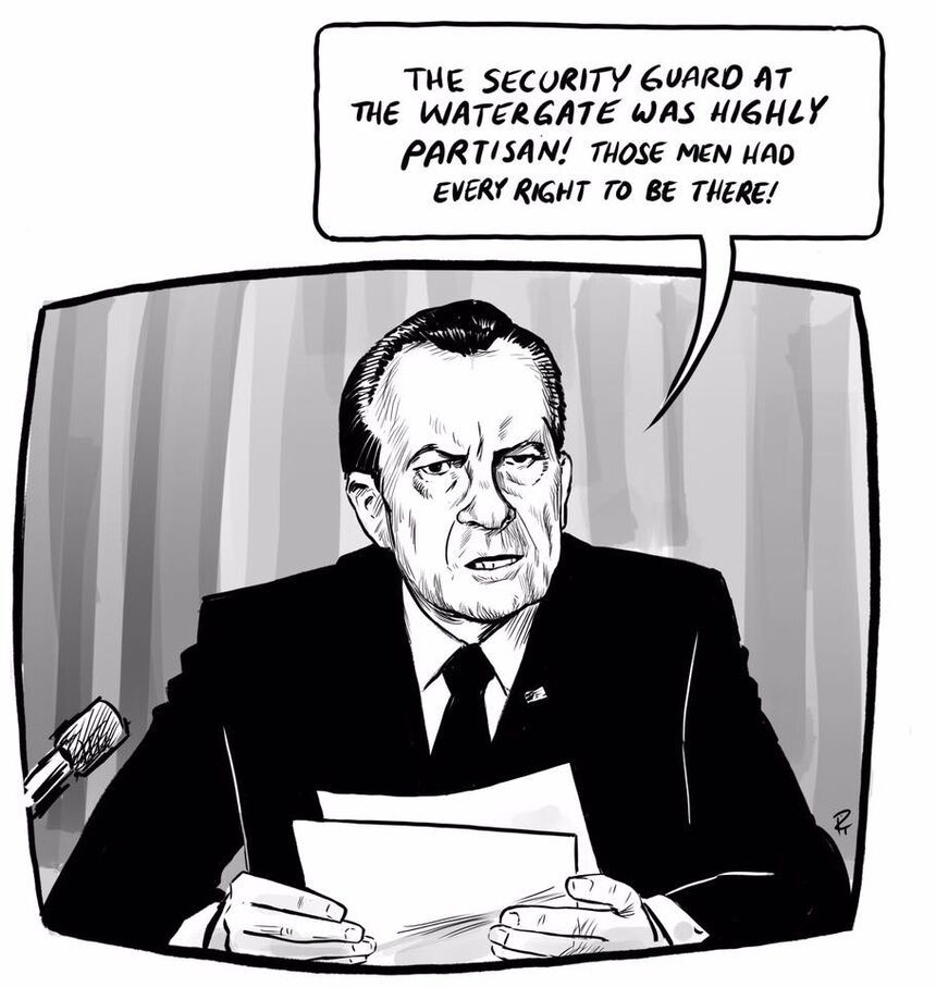 Pia Guerra suggests how Nixon might have responded to the Watergate burglary, if he had Trump’s sociopathic personality: Not with denial or by ducking responsibility, as he did, but by lying about the nature of the event and daring anyone to prove otherwise.