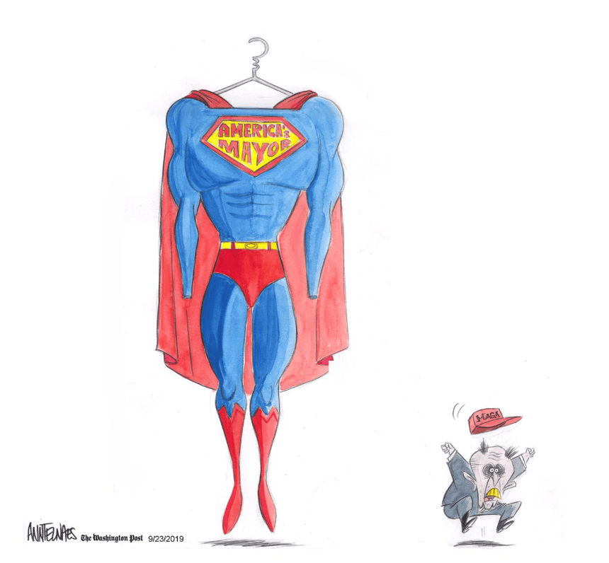 Ann Telnaes ably demonstrates the metamorphosis of Rudy Giuliani and it is also sad and bizarre.