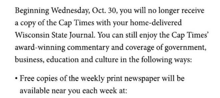 Later this month Cap Times readers will see another change: