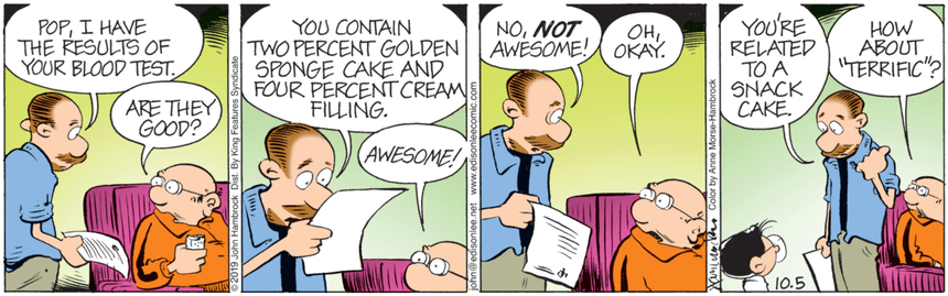 In this Edison Lee, Orville has been eating Twinkies, but, while Twinkies were better than Sno-Balls, the Hostess Cupcake was the main attraction, and here’s the thing: Candy bars have become smaller, but Hostess Cupcakes simply became crappier.