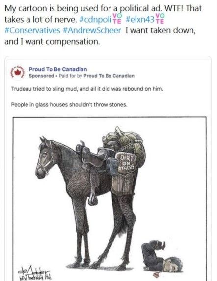 “I don’t mind Canadians sharing it — and I actually don’t mind MPs sharing them — it’s a little different in an election though,” he said, explaining it’s an issue “when it’s a paid advertisement or second-party use of my work.”