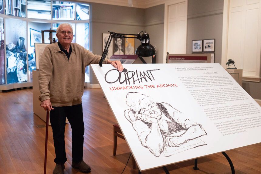 Last year, Oliphant donated almost 7,000 drawings, watercolors, prints, sculptures and sketchbooks to the UVA Library. Complementing his exquisite art is a wealth of archival material: some of the scrapbooks in which he began his work every morning, plus correspondence, photographs, professional papers and recordings.