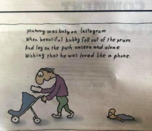 The Michael Leunig cartoon that suggested mothers love their phones and Instagram more than their children was originally rejected by the Spectrum editor for Saturday’s Sydney Morning Herald and Age and published on Wednesday’s opinion pages instead.
