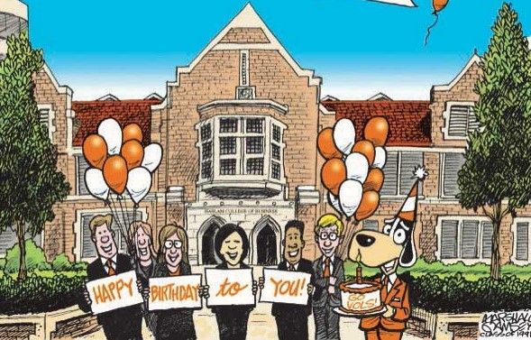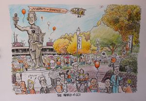 In 2009, he did a cartoon celebrating the conclusion of Where in the World is Smokey? a global photo challenge that promoted UT’s Ready for the World initiative.