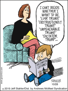 Today’s (Oct. 28) comic strip, “Moderately Confused,” belongs on your editorial page, IMHO! It’s a tad bit over the line politically, no matter what your opinion.