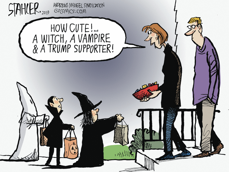 Today’s (Oct. 28) comic strip, “Moderately Confused,” belongs on your editorial page, IMHO! It’s a tad bit over the line politically, no matter what your opinion.