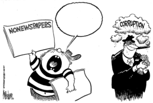Mike’s cartoons were timely, and they reflected the gifts in his hand, his heart and his brain — his artistic talent, his humanity and his fierce, nurtured sense of right and wrong, all of them working together at the drafting board to produce a witty, often stinging take on a news story, a controversy or political development. Sometimes his subjects were local, sometimes national or international. They were almost always provocative and often hilarious, and sometimes word reached the newsroom about a politician or business owner, or perhaps a posse of Evening Sun readers, who had taken great offense at a Lane cartoon and taken the matter up with the publisher.