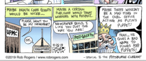 The Pittsburgh Current, where castoff Post-Gazette employee Rob Rogers landed in Pittsburgh, will hold its own byline strike, standing in solidarity with the P-G journalists: