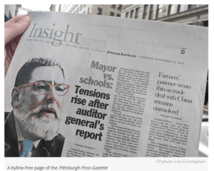 According to a source, Pittsburgh Post-Gazette union members secretly plan to walk off their jobs and start their own paper. This news comes days after PG Newsroom voted “No Confidence“ in their publisher Block Communications, Inc. (BCI) followed by a byline strike. The plan is fueled by the fear of uncertainty within membership and loss of newsroom staff.