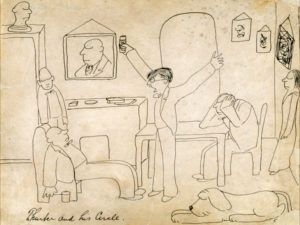 Skip to commentsThe 125th anniversary of James Thurber’s birth arrives on Sunday, December 8, and this year fans of the legendary humorist have extra reason to celebrate. Launched earlier this fall, A Mile and a Half of Lines: The Art of James Thurber is a two-pronged presentation of Thurber’s drawings, both in an exhibition at the Columbus Museum of Art and as a lavish accompanying book by Thurber expert Michael J. Rosen, published by Ohio State University Press.