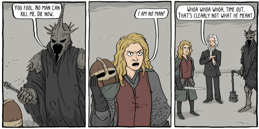 And to really dig into absurdity, Existential Comics offers a mashup of Lord of the Rings and John Locke’s theory of language, with Roland Barthes joining the fray.