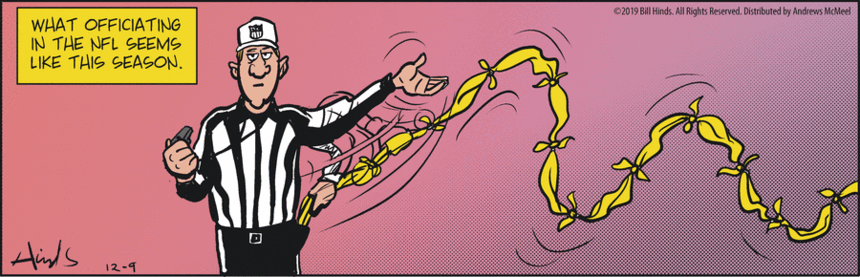 Speaking of games that aren’t the same, Tank McNamara offers this commentary on the flood of penalties that are slowing down football in the NFL this year.