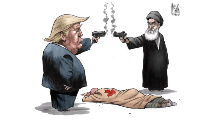 Bruce MacKinnon portrayed Canada as an innocent victim of two Warmongers.
