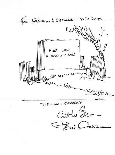 A copy of Conrad’s obituary cartoon for Richard Nixon and a signed copy of Paul’s sketch for the idea. Also: Paul’s realization that he forgot a major part of the idea.