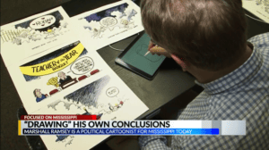 “Yea, I always joke that there’s probably a dent in my desk where I beat my head against the desk every day,” said Ramsey, political cartoonist.