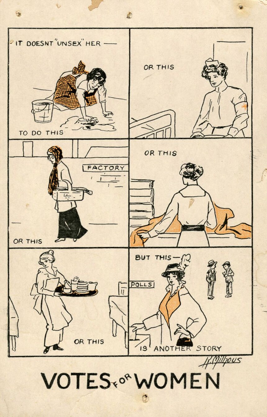 Of course, you know the reason they are employed in foundries is that they are cheaper and work longer hours than men. Women in the laundries, for instance, stand for 13 or 14 hours in the terrible steam and heat with their hands in hot starch. Surely these women won’t lose any more of their beauty and charm by putting a ballot in a ballot box once a year than they are likely to lose standing in foundries or laundries all year round.
