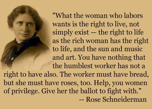 And Rose Schneiderman, who had a storied history, and was not only a suffragist but a labor activist, ACLU founder and adviser to FDR, didn’t pull a lot of punches in outlining the plight of workingclass women: