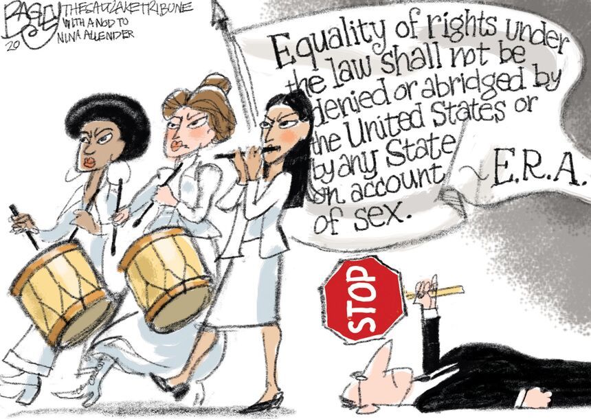 Pat Bagley offers this reminder that the Equal Rights Amendment is back on the table, a suitable cartoon for Susan B. Anthony’s 200th Birthday.