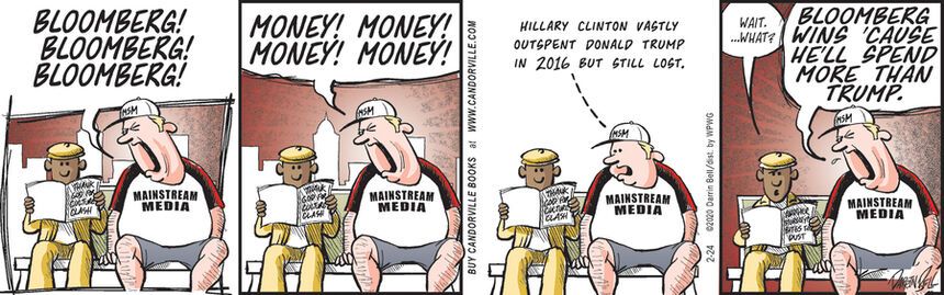 But then Candorville raises the concept that the media is pursuing a ghost in the notion that Mike Bloomberg can buy an election, given that they cite the notion that purported millionaire Donald Trump did the same thing in 2016.