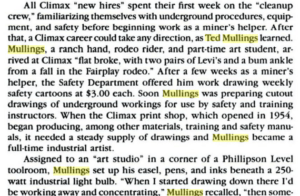 A month later, the Climax safety director asked Mullings if he’d be willing to draw weekly safety cartoons for three dollars each. Eager to put his artistic abilities to use, Mullings agreed.