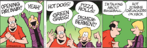 When getting to the Dustin comic strip it becomes clear it was the creators’ request to cancel the scheduled Zits strip and not the syndicate. Dustin ran with their Opening Day strip: