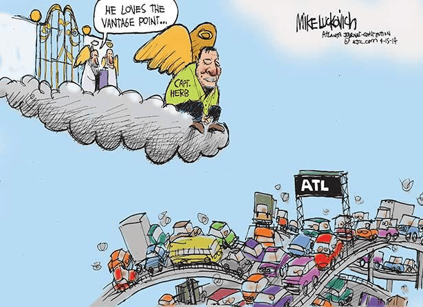 But one image of the memory of Captain Herb registers in my mind more than the rest: Mike Luckovich’s perfect editorial cartoon in the Tuesday, April 15, 2014 Atlanta Journal-Constitution.