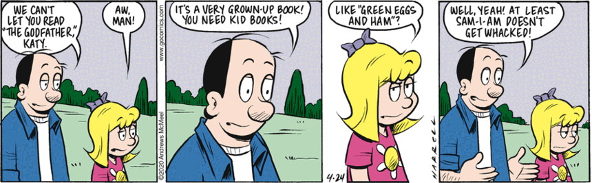 While over in Adam@Home, the parents are worried because little Katie has been reading “The Godfather,” and now you’re triggering a rant I take more seriously than Ewoks and At-Ats.