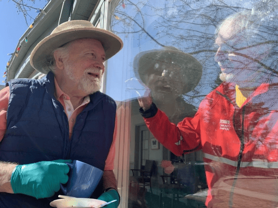 Former Journal cartoonist Yardley Jones and columnist Nick Lees mainly made faces at one another Saturday when Lees went to celebrate the 90th birthday of his friend Jones, now living in a west end seniors’ home. Covid-19 prevented Jones from leaving, and Lees from entering, McConnell Place. Sally Munro